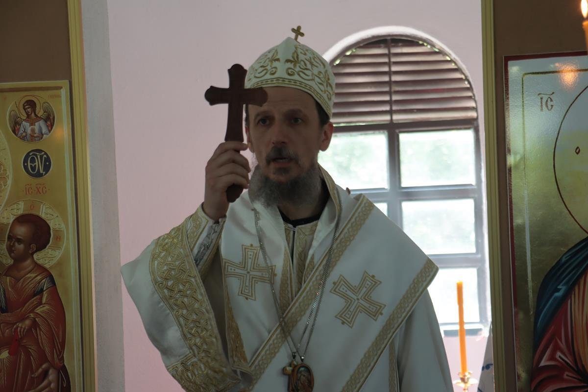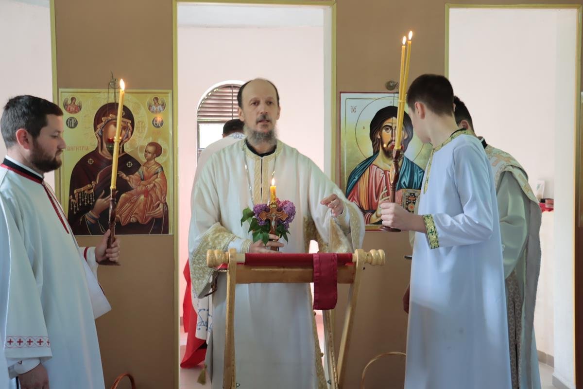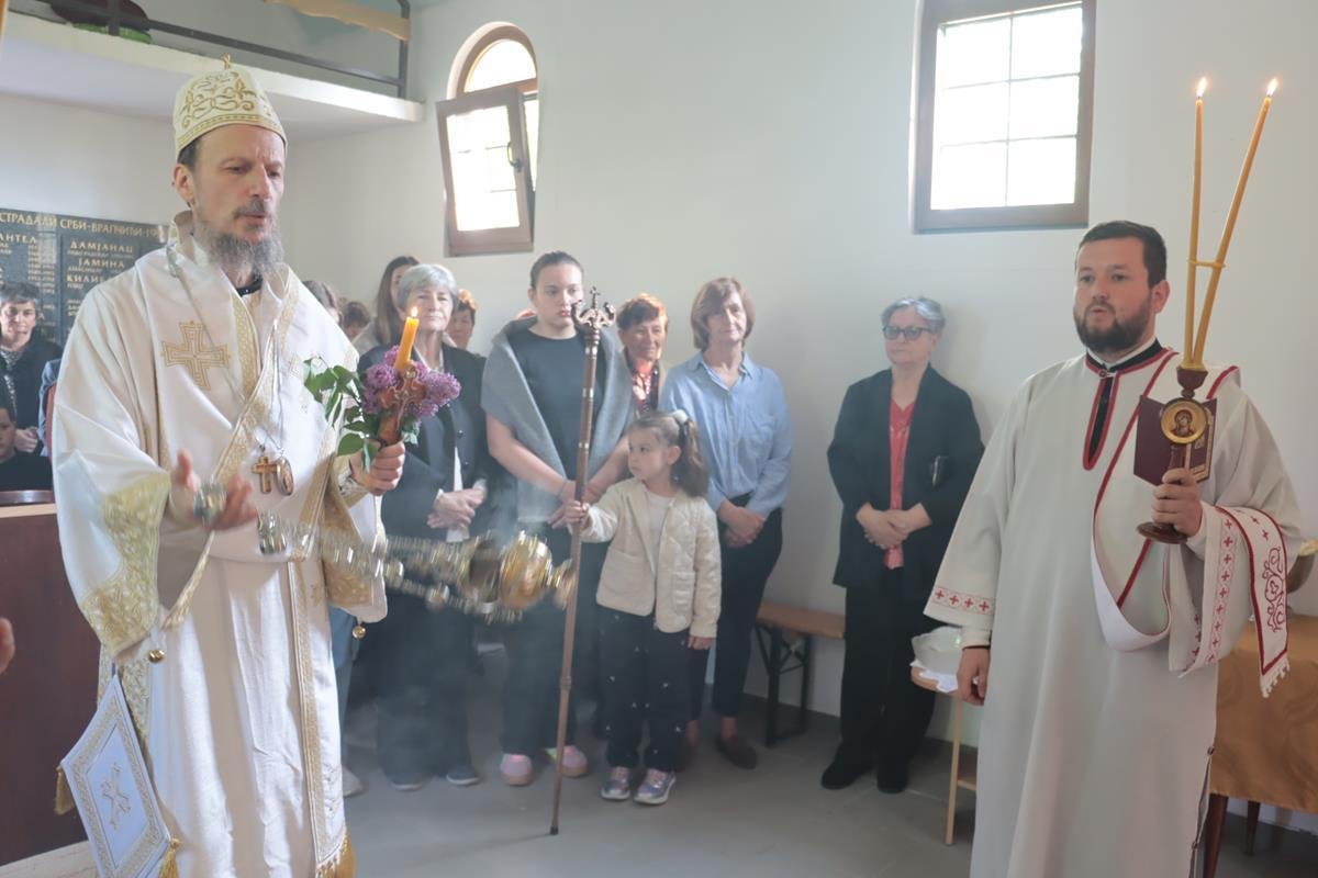 У јеванђељској бесједи, Владика Димитрије поучио је да је мали храм, у којем су се данас сабрали, посвећен Васкрсењу Христовом, али и дану у којем се Црква сјећа чудесног, чистог и предизабраног лика Пресвете Богородице, која је родила Спаситеља. Она је једна и уникатна, смирена слушкиња Господња која је омогућила да се чудо реализује, да Господ уђе у историју. У име читавог, људског рода – свих народа, свих генерација, Она је рекла: “Нека ми буде по вољи твојој.” Мајка Божија је јединствена личност, милостива смирена, молитвена, чиста као сунце и никад није било љепшег људског бића на земљи, које је само човјек, од Богородице. Она има тајну љубави ка Христу и Она преноси човјекове молитве ка Христу.