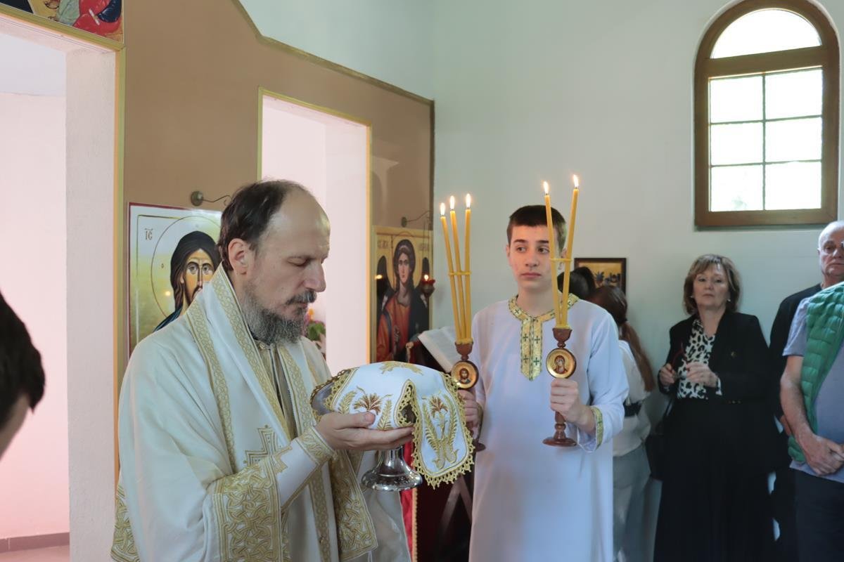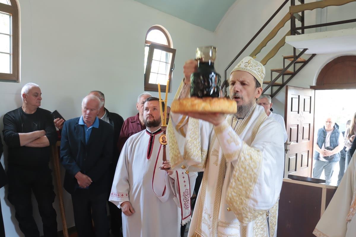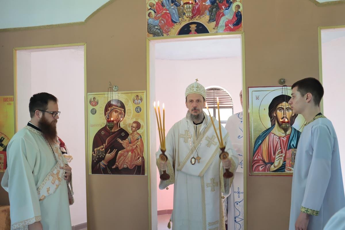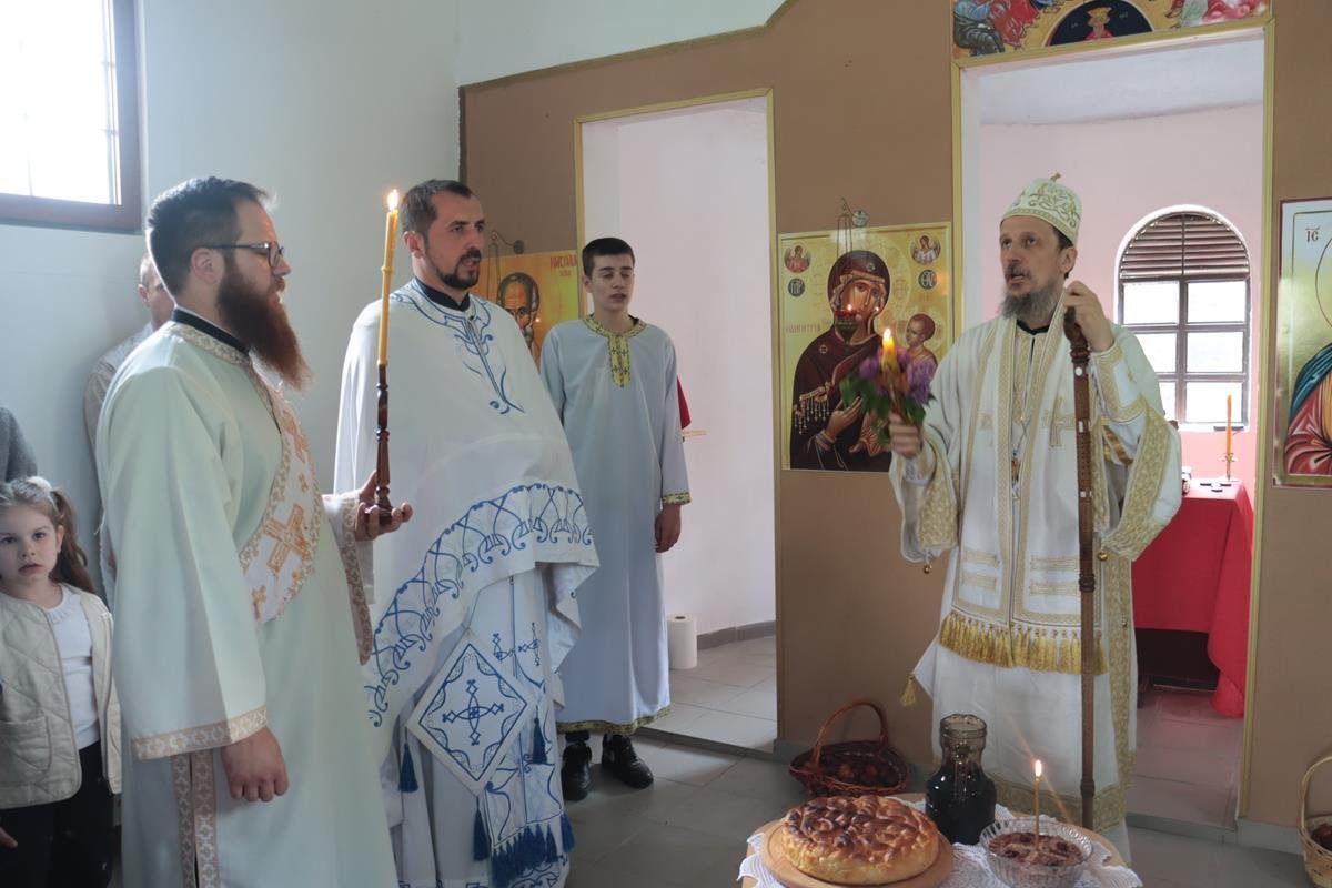 У јеванђељској бесједи, Владика Димитрије поучио је да је мали храм, у којем су се данас сабрали, посвећен Васкрсењу Христовом, али и дану у којем се Црква сјећа чудесног, чистог и предизабраног лика Пресвете Богородице, која је родила Спаситеља. Она је једна и уникатна, смирена слушкиња Господња која је омогућила да се чудо реализује, да Господ уђе у историју. У име читавог, људског рода – свих народа, свих генерација, Она је рекла: “Нека ми буде по вољи твојој.” Мајка Божија је јединствена личност, милостива смирена, молитвена, чиста као сунце и никад није било љепшег људског бића на земљи, које је само човјек, од Богородице. Она има тајну љубави ка Христу и Она преноси човјекове молитве ка Христу.