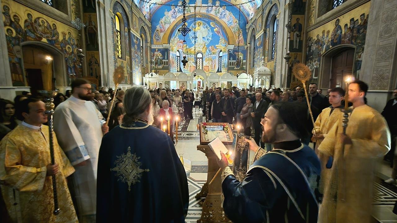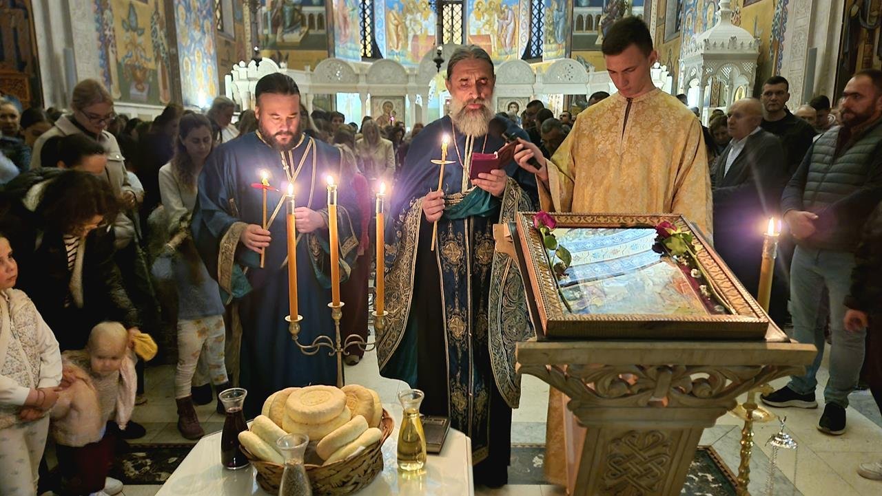 Освећене гранчице младе врбе, као символ палмових грана којима су дјеца и народ поздрављали Господа при Његовом уласку у Свети град Јерусалим, подијељене су вјерном народу. Потом је у Саборном храму служено празнично вечерње богослужење са петохљебницом, у духу молитвене радости и ишчекивања празника над празницима.