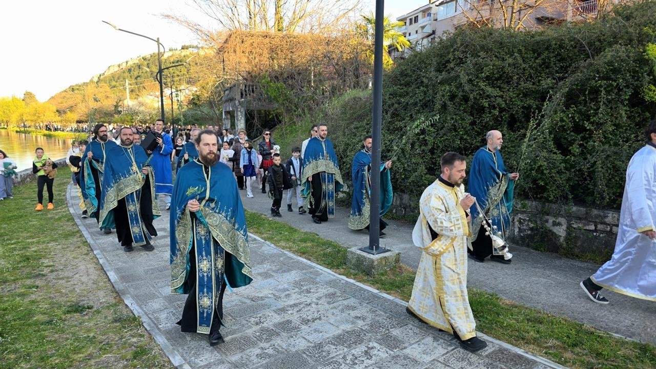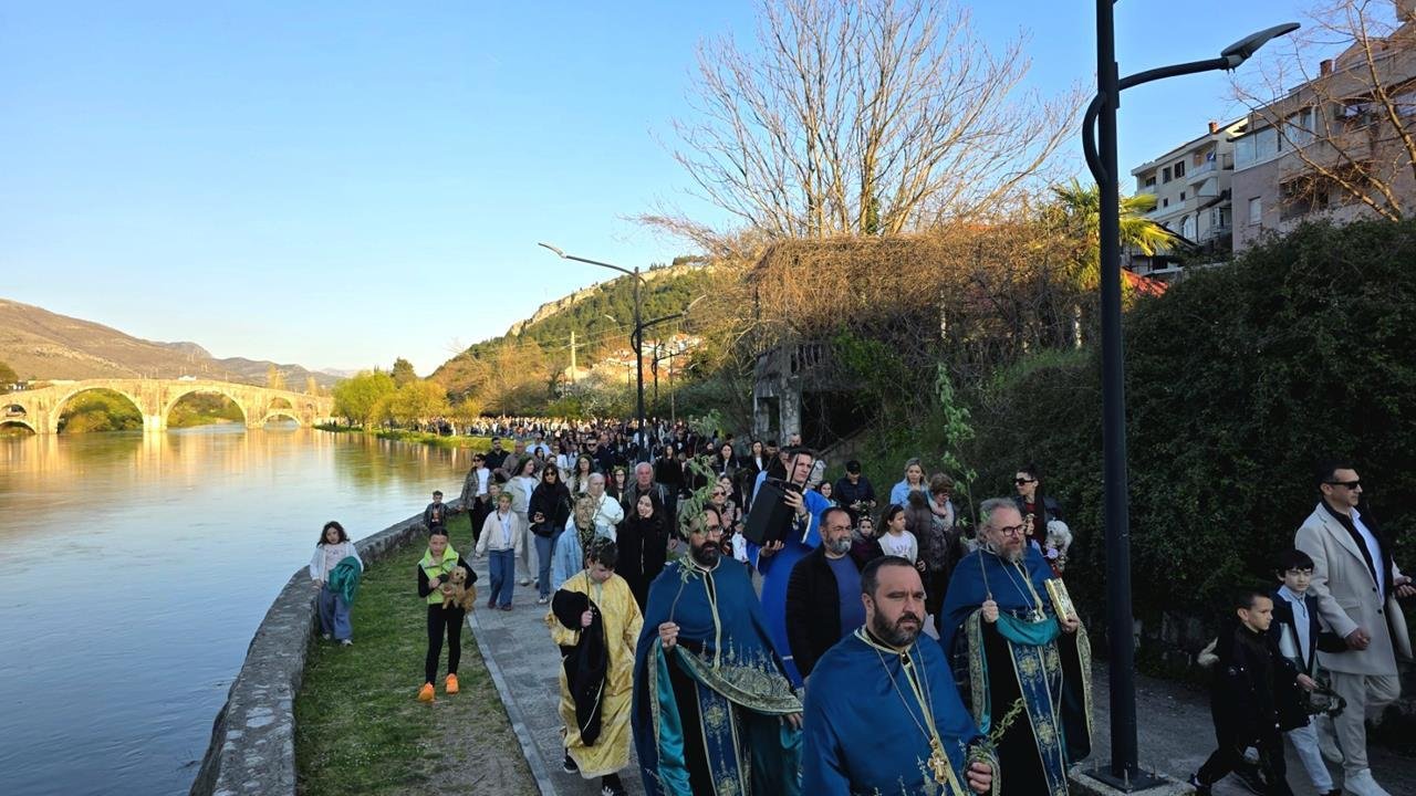Свечана литија кренула је од храма Светога Јована у Полицама, прошавши преко Каменог моста и Дучићеве улице, до Саборног храма Светог Преображења Господњег, гдје је извршено освећење врбових гранчица.