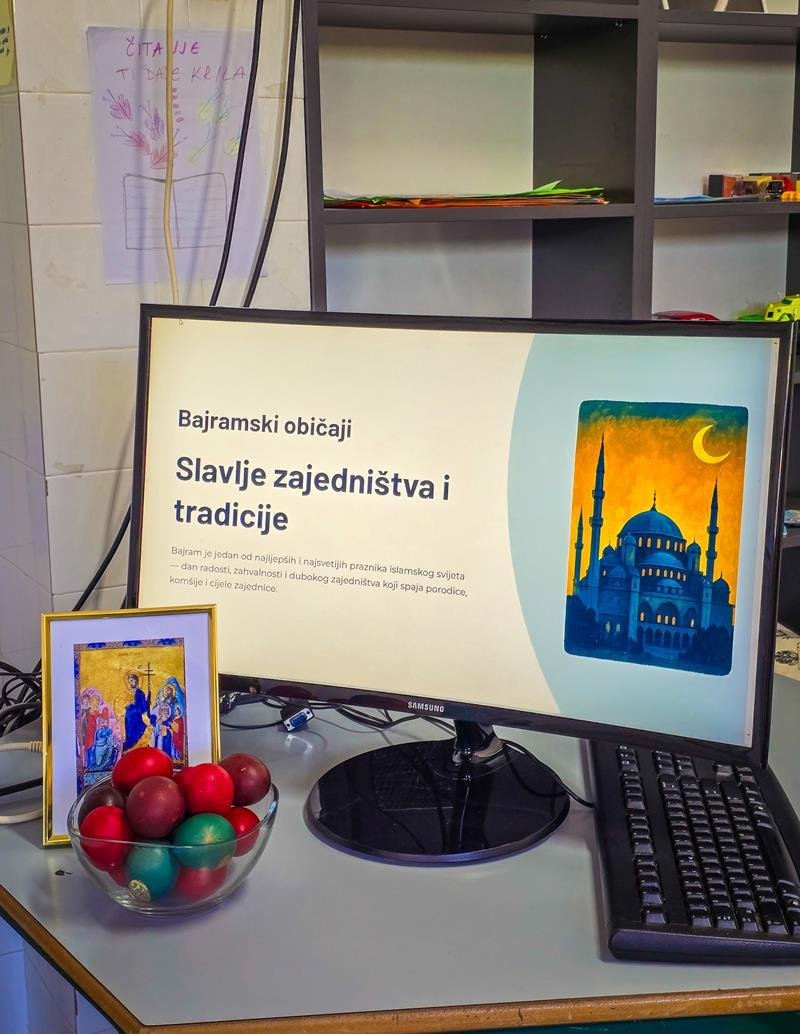 Кроз разговор, наши вјероучитељи Хaснија, Амра, Марко и помоћница директорице Јасна Госто пренијели су дјеци важна знања о Васкрсу и Бајраму.